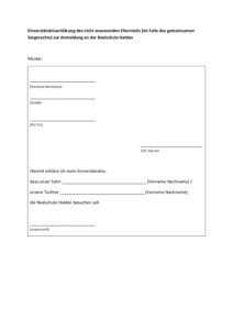 Muster Einverständniserklärung im Falle des gemeinsamen Sorgerechts